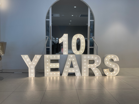 Large range of freestanding illuminated letters, numbers and words for hire.
